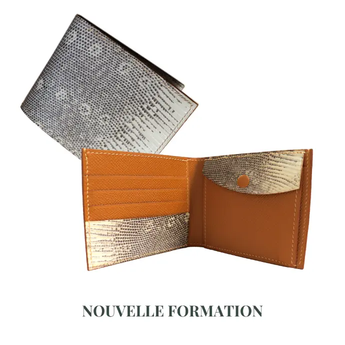 Découvrez notre nouvelle formation dédiée à la création d’un portefeuille traditionnel en cuir de veau, alliant techniques de maroquinerie de précision et finition haut de gamme.