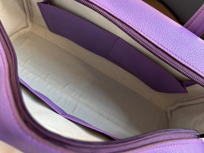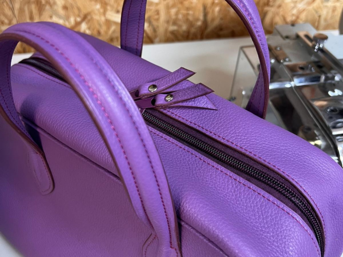 Au fil des étapes, vous créerez des poches intérieures en cuir (montées avec rembord et soufflet), poserez une doublure en tissu et monterez une fermeture à glissière sur bandeau. Vous façonnerez des poignées de type sellier, fixées artisanalement, et apporterez des détails soignés grâce au filetage, au ponçage et aux coutures décoratives.